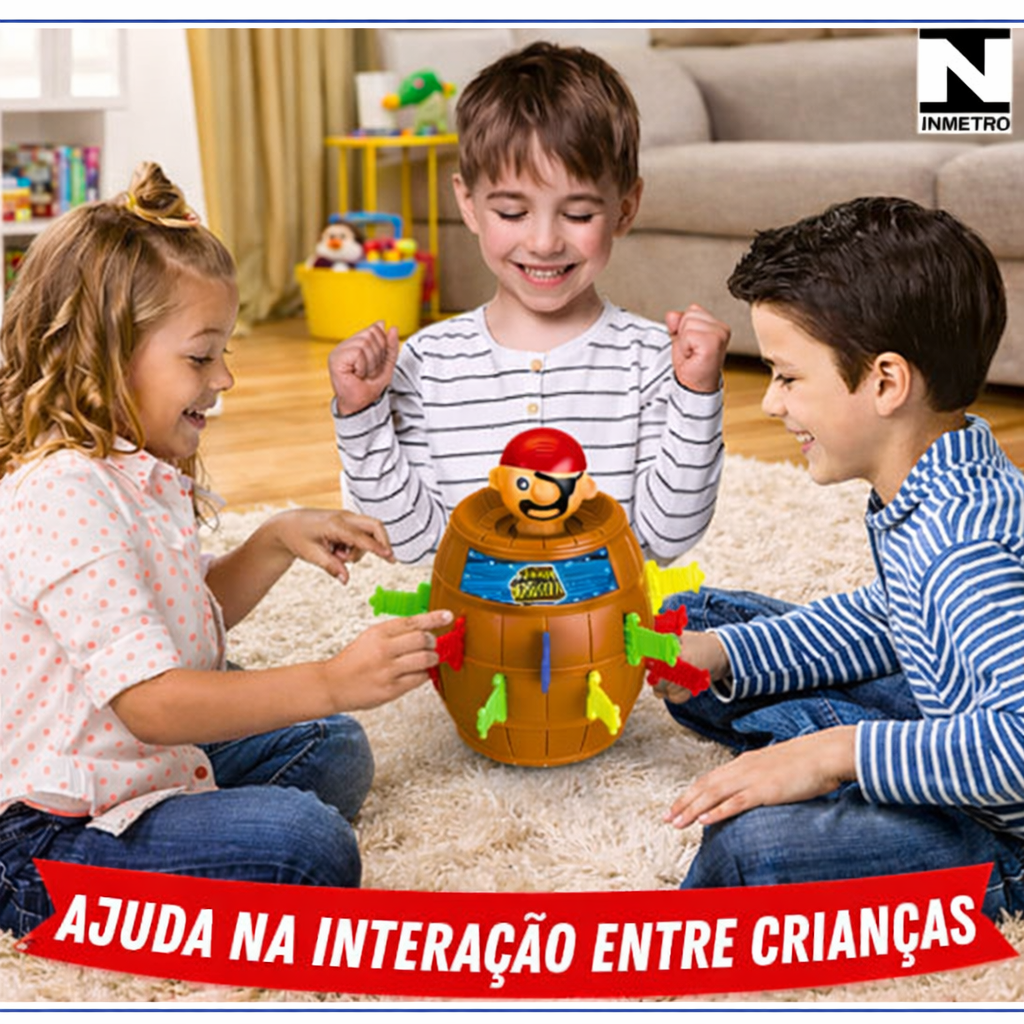 Dê mais emoção às brincadeiras com o jogo clássico que nunca sai de moda! O Barril do Pirata é perfeito para divertir crianças e adultos, despertando risos, atenção e aquele friozinho na barriga a cada rodada.